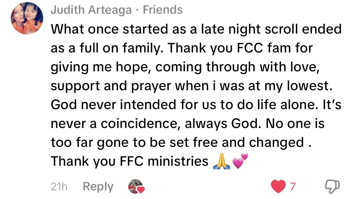 Your donations go directly toward advancing the mission of FFCM. Contributions help fund outreach event, worship gatherings, ministry operations, and purchase bibles. This helps us share the Gospel, provide Hope, and restore lives through Jesus Christ.